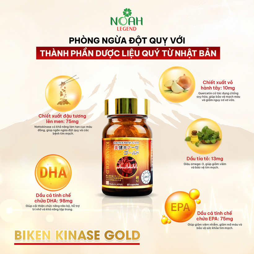 Biken Kinase Gold sản phẩm chống các triệu chứng đột quỵ Nhật Bản giảm oxy hóa giảm stress gốc tự do (hộp/lọ 60 viên)