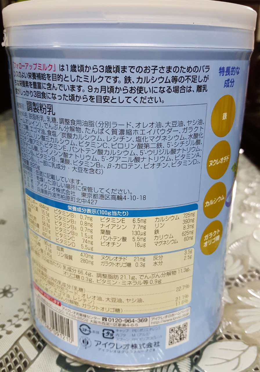 Sữa bột Glico Icreo số 1 - lon/hộp 820 gr (dành cho trẻ từ 1 - 3 tuổi)