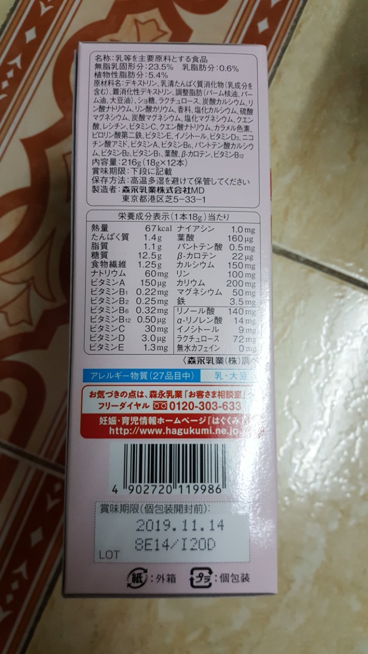 Một hộp sữa bầu morinaga có 12 gói sữa bột 18gr, pha được một cốc sữa 120ml nuớc( Uống nóng hoặc đá đều đuợc)với đầy đủ dinh dưỡng và vi chất, có bổ sung DHA. canxi và Axit Folic, đặc biệt hàm lượng chất béo rất thấp, tránh béo phì và giảm thiểu nguy cơ tiểu đường cho các bà mẹ.