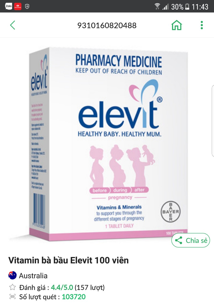 - Elevit healthy baby healthy mum là sản phẩm cho bà bầu số 1 của Úc, được các chuyên gia dinh dưỡng và sức khỏe của Úc khuyến cáo sử dụng.