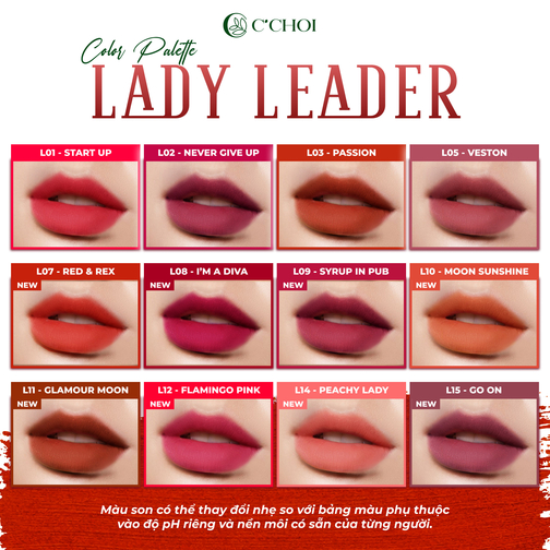 Son sáp Lady Leader gồm 12 gam màu nắm bắt xu hướng và được yêu thích nhất hiện nay