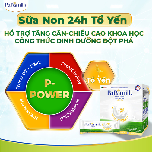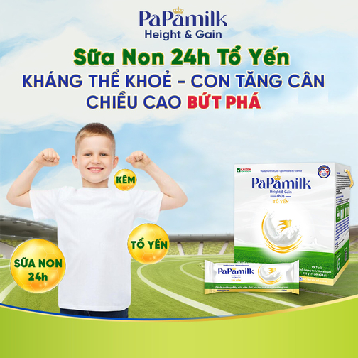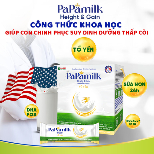 Sữa tăng cân và chiều cao cho trẻ PaPamilk Heigth & Gain chứa Tổ Yến - Hộp 14 gói