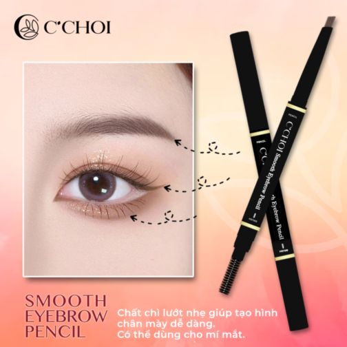 Chì kẻ lông mày vẽ eyeliner mí mắt 1 đầu kẻ và 1 đầu chổi C'Choi - Smooth Eyebrow Pencil
