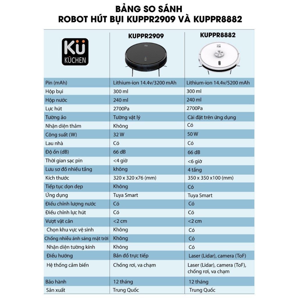 Robot hút bụi lau nhà KUPPR8882 trang bị lực hút 2700Pa mạnh mẽ