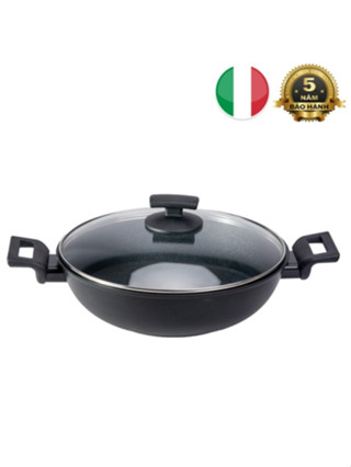 Chảo Ý (Italy) chống dính, bên trong phủ kim cương, bên ngoài phủ men sứ sâu lòng 28cm, có nắp kính cường lực, cao 8.5cm DIAMANTE Kuchen