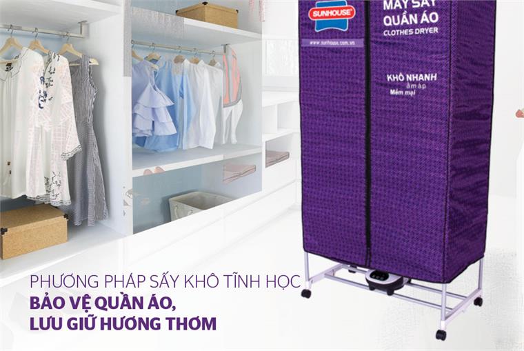 Thời tiết mưa gió, độ ẩm cao chính là nguyên nhân gây ra các ổ dịch cho vi khuẩn và nấm mốc trên quần áo. Không những khiến cho người mặc sự khó chịu, thiếu tự tin, chúng còn gây ra các bệnh ngoài da như mẩn ngứa hoặc viêm loét, chúng cũng có thể ảnh hưởng đến hệ hô hấp, tiêu hóa của người sử dụng. Với khả năng làm khô tại chỗ nhanh chóng mà không ảnh hưởng đến chất liệu quần áo, Tủ sấy quần áo SUNHOUSE SHD2707 chính là giải pháp hoàn hảo cho việc giặt giũ trong những ngày nồm ẩm.
