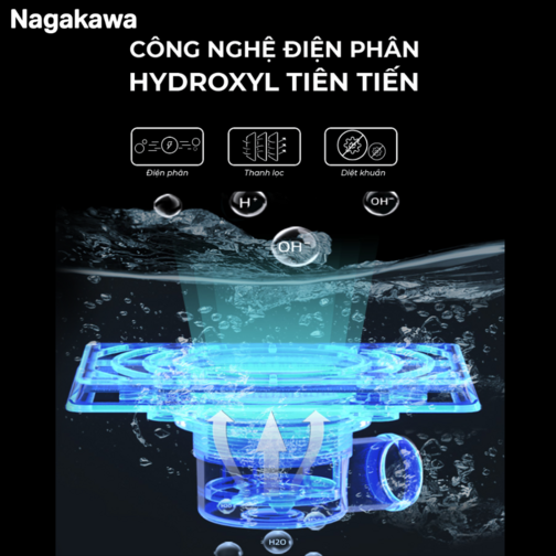 Ưu việt hơn so với các công nghệ tiệt trùng thực phẩm khác, máy khử khuẩn Nagakawa NAG3906 sẽ mang lại hiệu quả cao hơn nhờ công nghệ điện phân Hydroxyl, giúp loại bỏ 99,99% các chất gây hại, loại bỏ đến 69% chất độc hại (thuốc tăng trọng, thuốc trừ sâu).