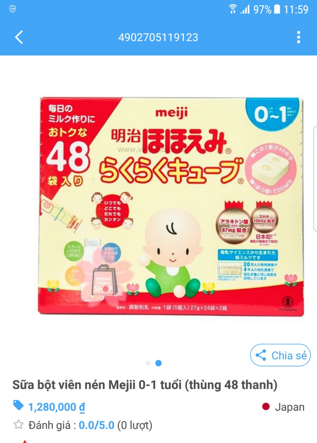 Sữa Meiji thanh 0-1